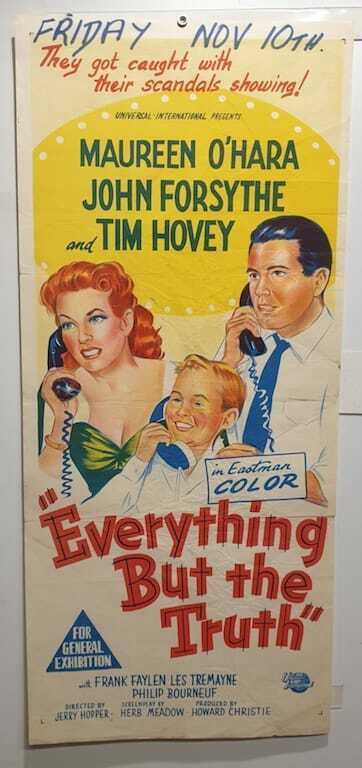 ORIGINAL DAYBILL MOVIE POSTER – EVERYTHING BUT THE TRUTH – Maureen O’Hara, John Forsythe, Tim Hovey