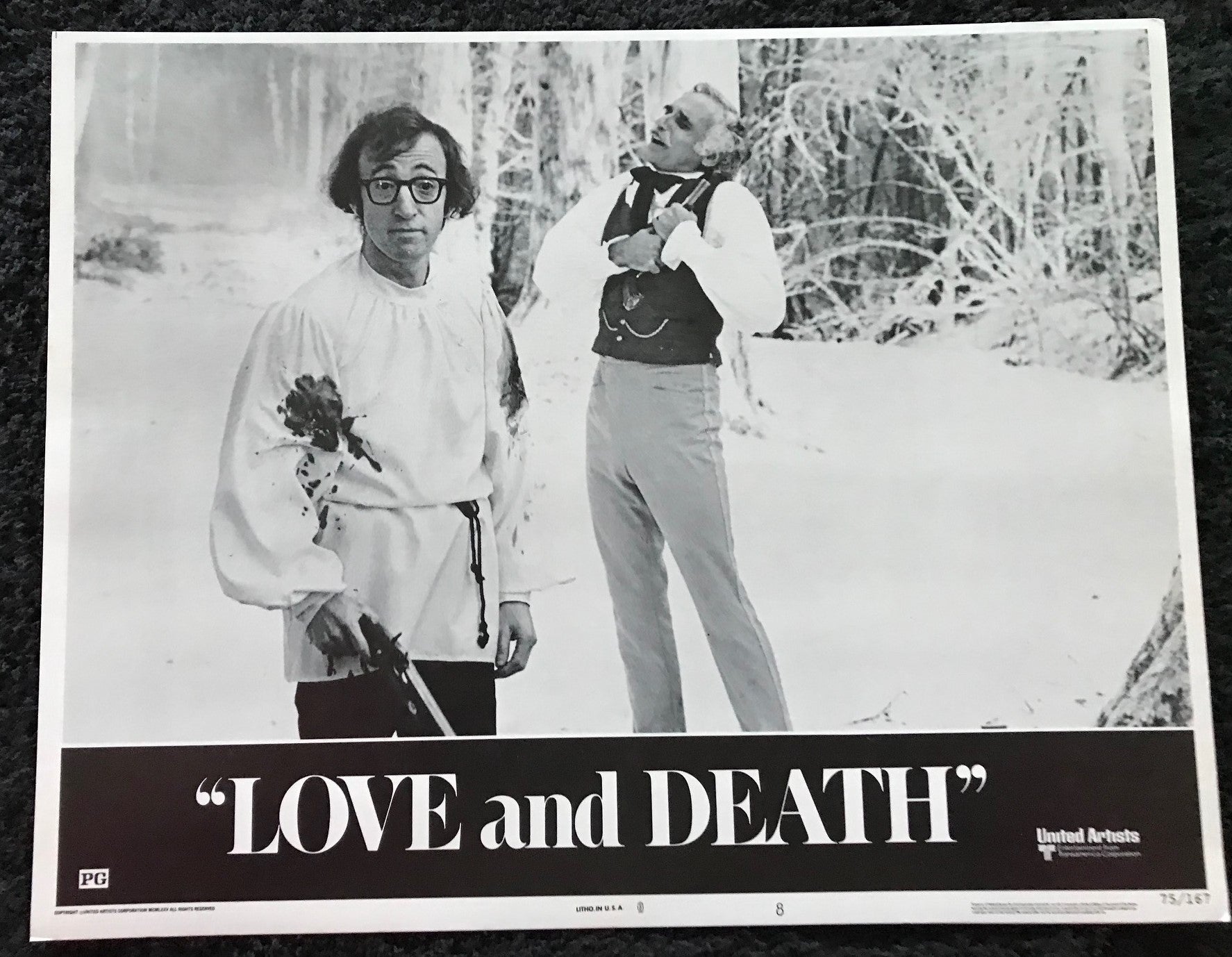 ORIGINAL LOBBY CARDS - LOVE AND DEATH - 1975 - set of 8 cards - Woody Allen, Diane Keaton, George Adet, Olga Georges-Picot
