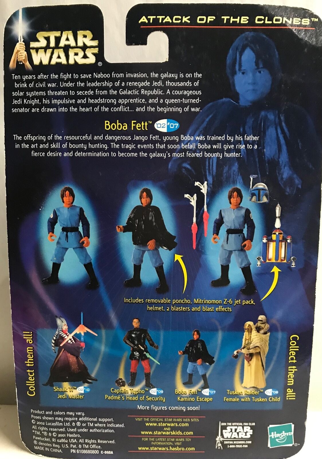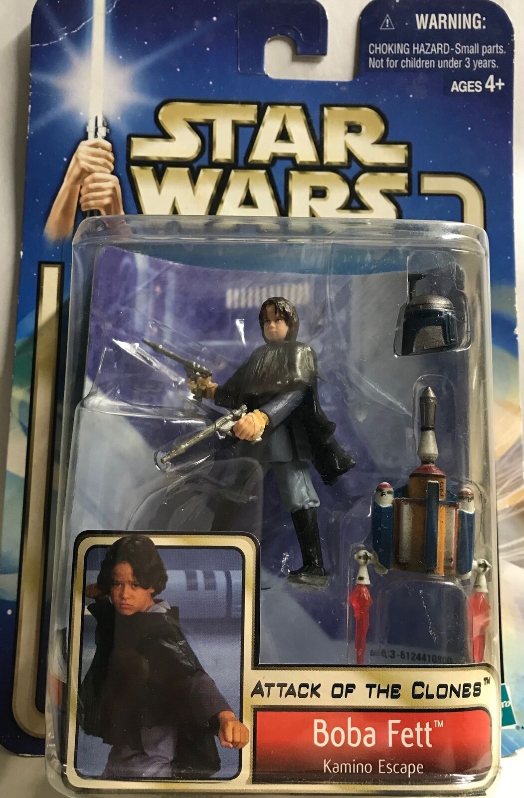 STAR WARS – HASBRO – AOTC – BOBA FETT – “KAMINO ESCAPE” – with Helmet and Poncho, Mitrinomon Z-6 Jet Pack, 2 Blasters, Blast Effects